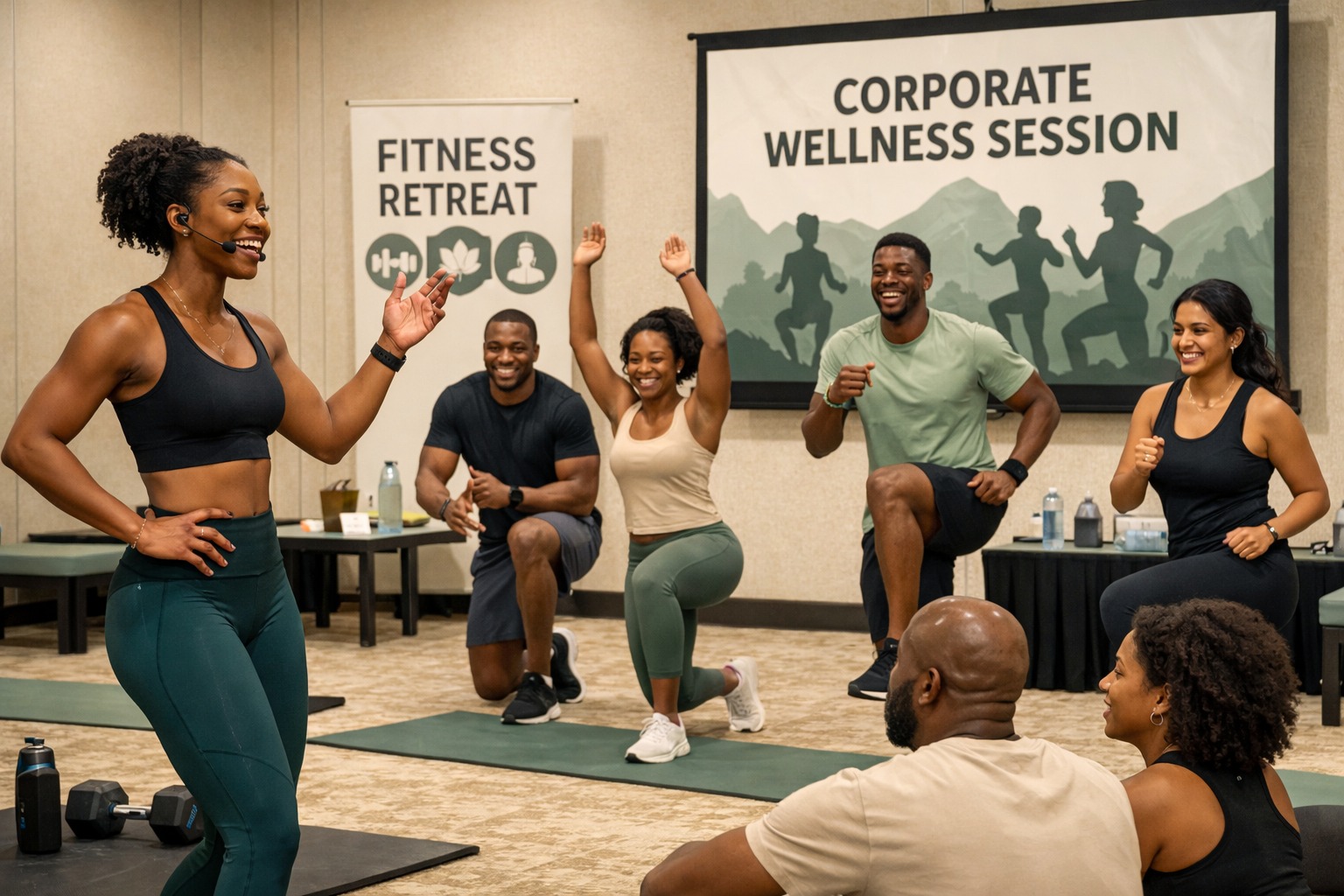 Comprehensive fitness experience for conferences, corporate retreats, and larger professional gatherings.